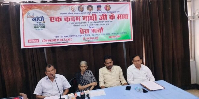 लखनऊ । गांधी की प्रसंगिकता हमेशा से बनी है और बनी रहेगी लेकिन कुछ वर्षो से गांधी की शारीरिक हत्या के बाद अब उनकी वैचारिक हत्या की कोशिश की जा रही है । यह बातें साझी विरासत की प्रेस कांफ्रेस में कही गई ।