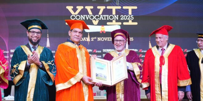 प्रो-चांसलर श्री सैयद नदीम अख्तर ने भी छात्रों को शुभकामनाएं दीं और कहा, “दीक्षांत समारोह हमारे महत्वपूर्ण मील के पत्थर और उपलब्धियों का प्रतीक होते हैं। यह डिग्रियाँ आपकी उत्कृष्टता का प्रतिनिधित्व करती हैं, लेकिन उससे भी अधिक महत्वपूर्ण है कि इस प्रक्रिया में आप किस प्रकार के व्यक्ति बने हैं। एक मनुष्य अंतिम पलों में ट्रॉफी नहीं मांगता, बल्कि वे रिश्तों को महत्व देता है। इसलिए अपने माता-पिता को कॉल करें, बार-बार धन्यवाद कहना सीखें, और बोलने से अधिक सुनना सीखें। शिक्षा के परिणामस्वरूप, आपको यही सब कुछ बनना है। दुनिया को डॉक्टर और इंजीनियर से अधिक अच्छे इंसानों की आवश्यकता है। सही होने से बेहतर अच्छा होना जरूरी है। विद्यार्थियों, यह आपका विदाई नहीं बल्कि एक निमंत्रण है। आप अपने परिवार की खुशी हैं, अपने शिक्षकों का अभिमान हैं। आपके दिल में प्रेम भरा रहे।“