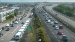 सुरक्षित स्थानों की तरफ अपनी गाड़ियों से जाते हुए लोग