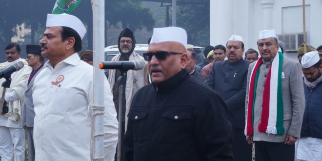 लखनऊ। देश के 75 वें गणतंत्र दिवस के पावन अवसर पर उ0प्र0 कांग्रेस कमेटी मुख्यालय में कांग्रेस अध्यक्ष पूर्व मंत्री अजय राय ने परंपरागत तरीके से झंडारोहण कर राष्ट्रीय ध्वज को सलामी दी। इस मौके पर ध्वज रक्षक की भूमिका में सेवादल के मुख्य संगठक डा0 प्रमोद कुमार पाण्डेय रहे। कार्यक्रम की शुरुआत राष्ट्रीय गीत ‘‘वंदे मातरम’’ से हुई।