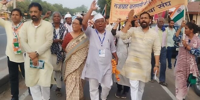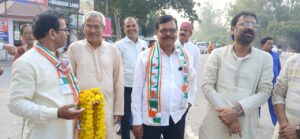 उन्नाव। जिला कांग्रेस कमेटी द्वारा सर्व सेवा संघ के तत्वावधान में आयोजित गांधी पदयात्रा का नवाबगंज में भव्य स्वागत किया गया इस अवसर पर जिला अध्यक्ष सहित कांग्रेस पदाधिकारीगणो ने यात्रियों का माल्यार्पण कर भव्य स्वागत किया ।