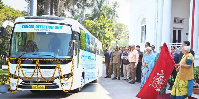 लखनऊ : प्रदेश की राज्यपाल श्रीमती आनंदीबेन पटेल ने आज यहाँ राजभवन से किंग जार्ज चिकित्सा विश्वविद्यालय की ‘मोबाइल कैंसर डिटेक्शन यूनिट‘ को फ्लैग ऑफ करके रवाना किया। सभी प्रकार के कैंसर की प्रारम्भिक स्तर पर ही पहचान करने में सक्षम ये यूनिट बस भारत इलेक्ट्रॉनिक्स लिमिटेड के सी0एस0आर0 फण्ड से अनुदानित है और सी-डेक ने इसका डिजाइन किया है।