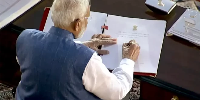 नई दिल्ली । नरेंद्र मोदी ने लगातार तीसरी बार भारत के प्रधानमंत्री पद की शपथ ली है। राष्ट्रपति द्रोपदी मुर्मू ने नरेंद्र मोदी को पद और गोपनीयता की शपथ दिलाई। नरेंद्र मोदी 2014 में पहली बार देश के प्रधानमंत्री चुने गए थे। 2019 में नरेंद्र मोदी दूसरी बार भारत के प्रधानमंत्री बने।