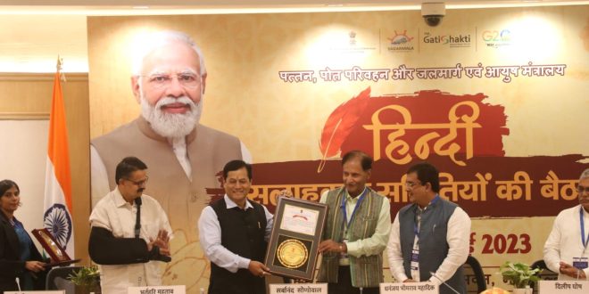 नयी दिल्ली । रिज़वान रज़ा । केंद्रीय पत्तन, पोत परिवहन और जलमार्ग मंत्री सर्बानंद सोनोवाल ने राजभाषा शील्ड एवं मौलिक पुस्तक योजना के तहत वरिष्ठ पत्रकार और लेखक अरविंद कुमार सिंह को उनकी पुस्तक भारत में जल परिवहन के लिए सम्मानित किया गया। विज्ञान भवन में शनिवार को आयोजित मंत्रालय की हिंदी सलाहकार समिति की बैठक में यह पुरस्कार दिया गया। इस समारोह में कई सांसद, मंत्रालय के वरिष्ठ अधिकारी और सभी बंदरगाहों के प्रमुख अधिकारी मौजूद थे।