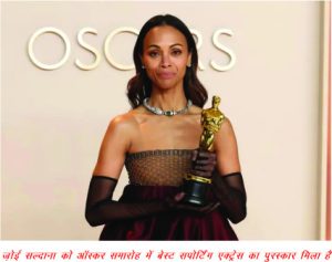 ऑस्कर समारोह में ज़ोई सल्दाना को बेस्ट सपोर्टिंग एक्ट्रेस का पुरस्कार मिला है। ज़ोई सल्दाना का यह पहला ऑस्कर अवॉर्ड है। उन्हें ‘एमिलिया पेरेज़’ में बेहतरीन एक्टिंग के लिए यह पुरस्कार मिला है। ऑस्कर अवॉर्ड पाने के बाद ज़ोई सल्दाना की आंख़ों में खुशी के आंसू भर आए । उन्होंने कहा, “मैं डोमिनिकन मूल की पहली अमेरिकी हूं जिसे यह पुरस्कार मिला है, मुझे पता है कि मैं यह पुरस्कार पाने वाली आखिरी शख्स नहीं हूं।
