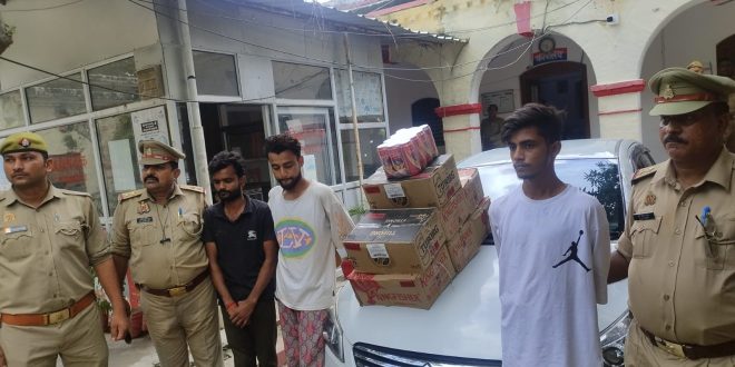 मलिहाबाद। शहजाद अहमद खान । थाना क्षेत्र में इस समय चोरों का आतंक व्याप्त है। ग्राम सहिलामऊ स्थित भोलेन्द्र तिवारी की बियर शॉप में चोरों ने 63 पेटी बियर चोरी कर चम्पत हो गये थे। इसी दिन ग्राम गुलाबखेड़ा निवासी विपिन कुमार दास ने रिपोर्ट दर्ज कराई थी की उनके मेडिकल स्टोर को चोरों ने निशाना बना दवाइयां व नकदी उठा ले गये थे। जिसके बाद पुलिस चोरों की तलाश में जुटी थी। सोमवार तड़के करीब साढ़े 4 बजे लखनऊ बार्डर पर स्थित चौकी गोसा लालपुर पर चेकिंग के दौरान बंथरा थाना क्षेत्र के ग्राम हमीरपुर रोड निवासी वासू साहू, सीईपीईटी कालेज नादिरगंज सरोजनीनगर निवासी दाऊद शेख व ग्राम बदाली खेड़ा सरोजनीनगर निवासी अवनीश कुमार को पकड़ उनसे कड़ाई से पूछताछ की। जिसमें उक्त सभी ने बताया कि वह लगातार क्षेत्र में रेकी कर रात में चोरी की घटना को अंजाम देते थे। मलिहाबाद पुलिस ने उक्त तीनों चोरों के पास से घटना में प्रयुक्त मारुति सुजुकी यूपी 32 एचएम 2873 व बियर शॉप से चोरी की गयी 63 पेटियों में से 7 पेटी बियर बरामद की।