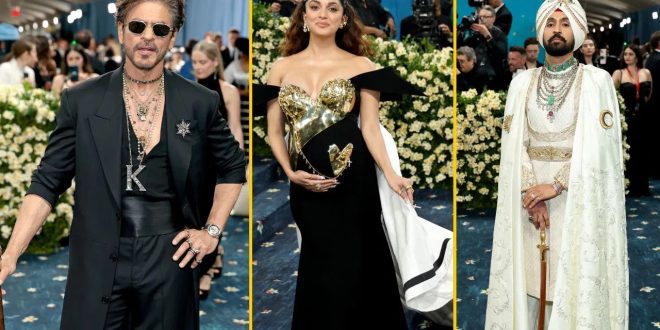 बॉलीवुड एक्टर शाहरुख़ ख़ान मेट गाला में हिस्सा लेने वाले पहले भारतीय पुरुष अभिनेता बन गए हैं। शाहरुख़ के अलावा, कियारा आडवाणी और दिलजीत दोसांझ ने भी इस कार्यक्रम में शिरकत करी । कियारा आडवाणी भारतीय डिज़ाइनर गौरव गुप्ता के गाउन में नज़र आईं। वहीं दिलजीत दोसांझ महाराजा लुक में मेट गाला पहुंचे।