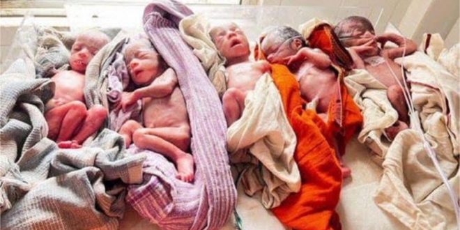 रांची । शादी के सात साल बाद प्रकाश कुमार के घर खुशियाॅं तो आई लेकिन अपने साथ चिंताए भी लेकर आई जिसने प्रकाश कुमार को भविष्य की चिंता में डाल डिया। झारखंड के सबसे बड़े सरकारी अस्पताल रांची स्थित राजेंद्र आयुर्विज्ञान संस्थान (रिम्स) में एक महिला ने पाँच बच्चियों को एक साथ जन्म दिया। इन बच्चों की माँ अंकिता कुमारी और पिता प्रकाश कुमार खुश हैं, क्योंकि उन्हें शादी के सात साल बाद बच्चे हुए हैं। डॉक्टरों का कहना है कि बच्चियों और उनकी माँ की हालत फिलहाल स्थिर है। फिर भी उन्हें अगले कुछ सप्ताह अस्पताल में ही गुजारने होंगे। उनकी बच्चियों को दो अलग-अलग अस्पतालों के नियोनटल इंटेसिव केयर यूनिट (एनआइसीयू) में वेंटिलेटर सपोर्ट पर रखा गया है। अंकिता कुमारी पिछले सात मई से रिम्स में स्त्री और प्रसूति रोग विभाग की प्रोफेसर डॉ शशिबाला सिंह की यूनिट में भर्ती हैं। प्रसव पूर्व हुई जांच के बाद डॉक्टरों ने उन्हें बता दिया था कि उनके गर्भ में एक से अधिक बच्चे हैं। वे डाक्टर्स की देखरेख में थीं। 22 मई की दोपहर उन्हें अचानक दर्द (लेबर पेन) हुआ और उन्होंने आधे घंटे के दौरान एक-एक कर पाँच बेटियों को जन्म दिया। उनका इलाज कर रही डॉ. शशिबाला सिंह की टीम में शामिल डॉ. बुलुप्रिया ने बताया कि रिम्स में पहली बार एक साथ पाँच बच्चों का जन्म हुआ है। इससे पहले यहां एक महिला ने चार बच्चों को जन्म दिया था। अब वह रिकार्ड टूट गया है। डॉ. बुलुप्रिया ने बताया कि ऐसे मामले कभी-कभार आते हैं लेकिन ऐसा हो पाना आश्चर्यजनक नहीं है। देश-दुनिया में इस तरह के प्रसव होते रहे हैं। यह सामान्य प्रक्रिया है, जब गर्भ में एक से अधिक एग्स बन जाएं. इनका अलग से कोई जोखिम नहीं है लेकिन भ्रूण की संख्या अधिक होने पर समय पूर्व प्रसव और बच्चों का वजन कम होने जैसी शिकायतें मिल सकती हैं। अंकिता के मामले में भी ऐसा ही हुआ है. हमें उनका प्रसव सातवें महीने में ही कराना पड़ा। इस कारण उनके बच्चों का वजन सामान्य से कम है। उनके फेफड़े कमजोर हैं। इसलिए उन्हें गहन निगरानी में रखा गया है।