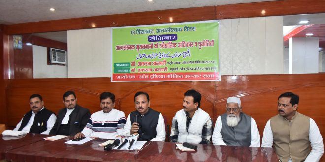 अकरम अन्सारी ने कहा आज अल्पसंख्यक दिवस मनाया जा रहा है जिसमें अपने संवैधानिक अधिकारों के बारे मे तमाम अल्पसंख्यको को जागरूक भी किया जा रहा है मौजूदा वक़्त मे तमाम राजनैतिक पार्टियां संविधान को लेकर मैदान मे भी है जबकि संविधान अल्पसंख्यक मुसलमानो को भी सभी धर्मों के नागरिकों की तरह अपने धर्म पर चलने अपने धर्म का प्रचार प्रसार करने शिक्षण संस्थान खोलने रोज़गार करने और सुरक्षा की गारंटी देता है लेकिन यह दिन और रात की तरह सच है कि सत्ता धारी पार्टियों ने सदैव जनता के वोटों को हासिल करने के लिए संविधान को तोड़ मरोड़ कर इस्तेमाल किया है।
